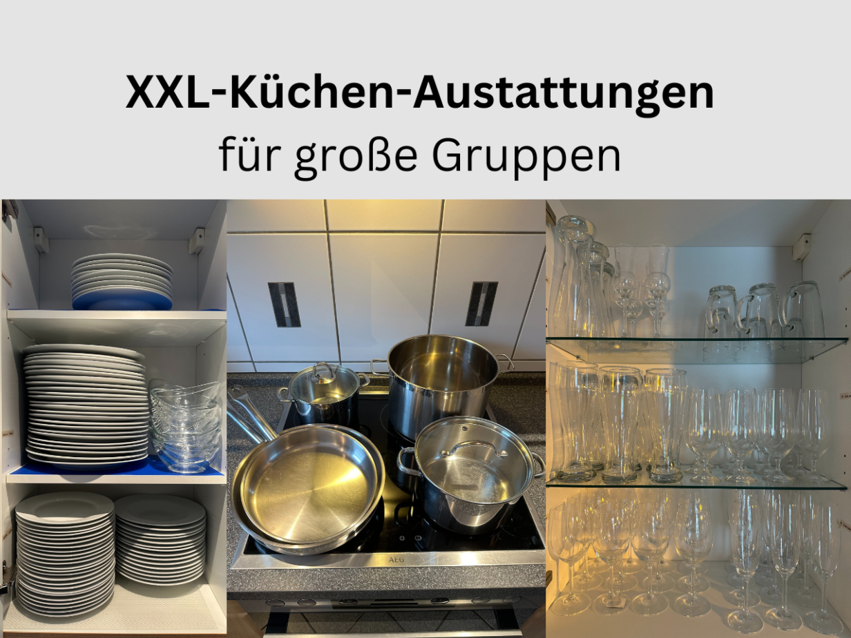 Küchen-Extras: Teestation, Spül- und Reinigungsmittelzubehör, Gewürze, Nespresso-Automat auf Wunsch, Zusatz-Geschirr für Gruppen.